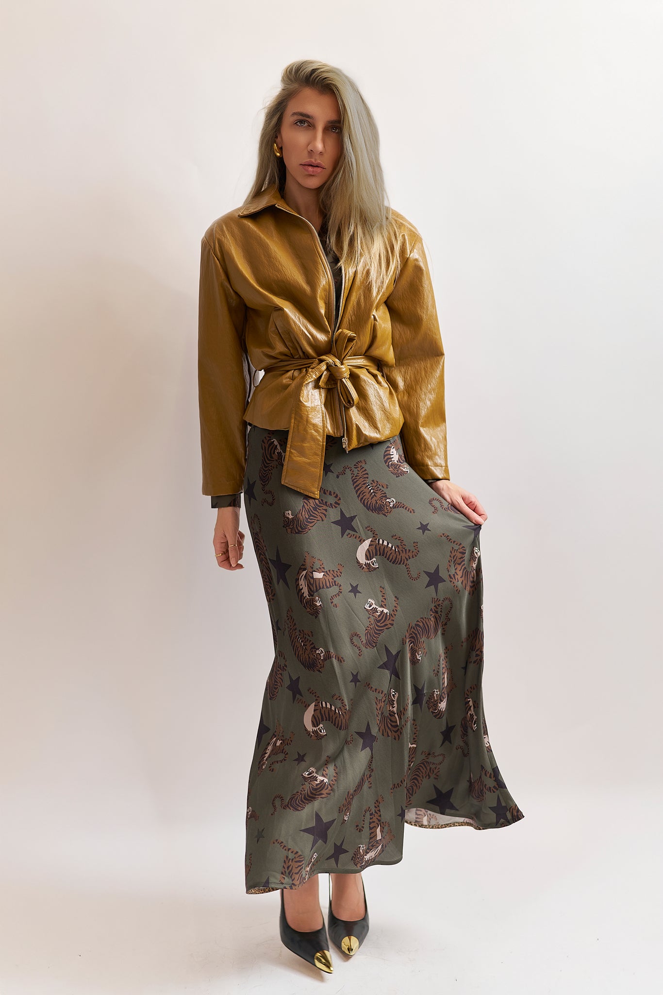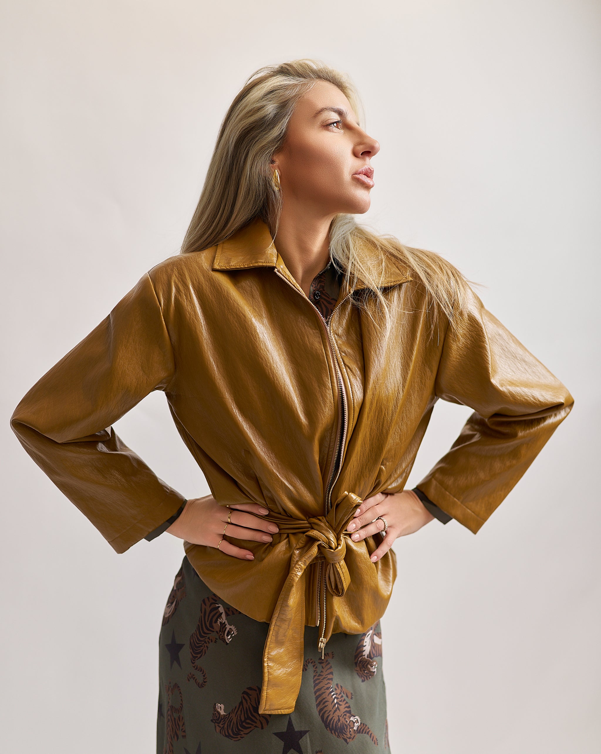 Giacca in ecopelle con collo camicia zip e cintura.spalline imbottite che donano un fit strepitoso soprattutto quando è portato chiuso e stretto con la sua fusciacca.
