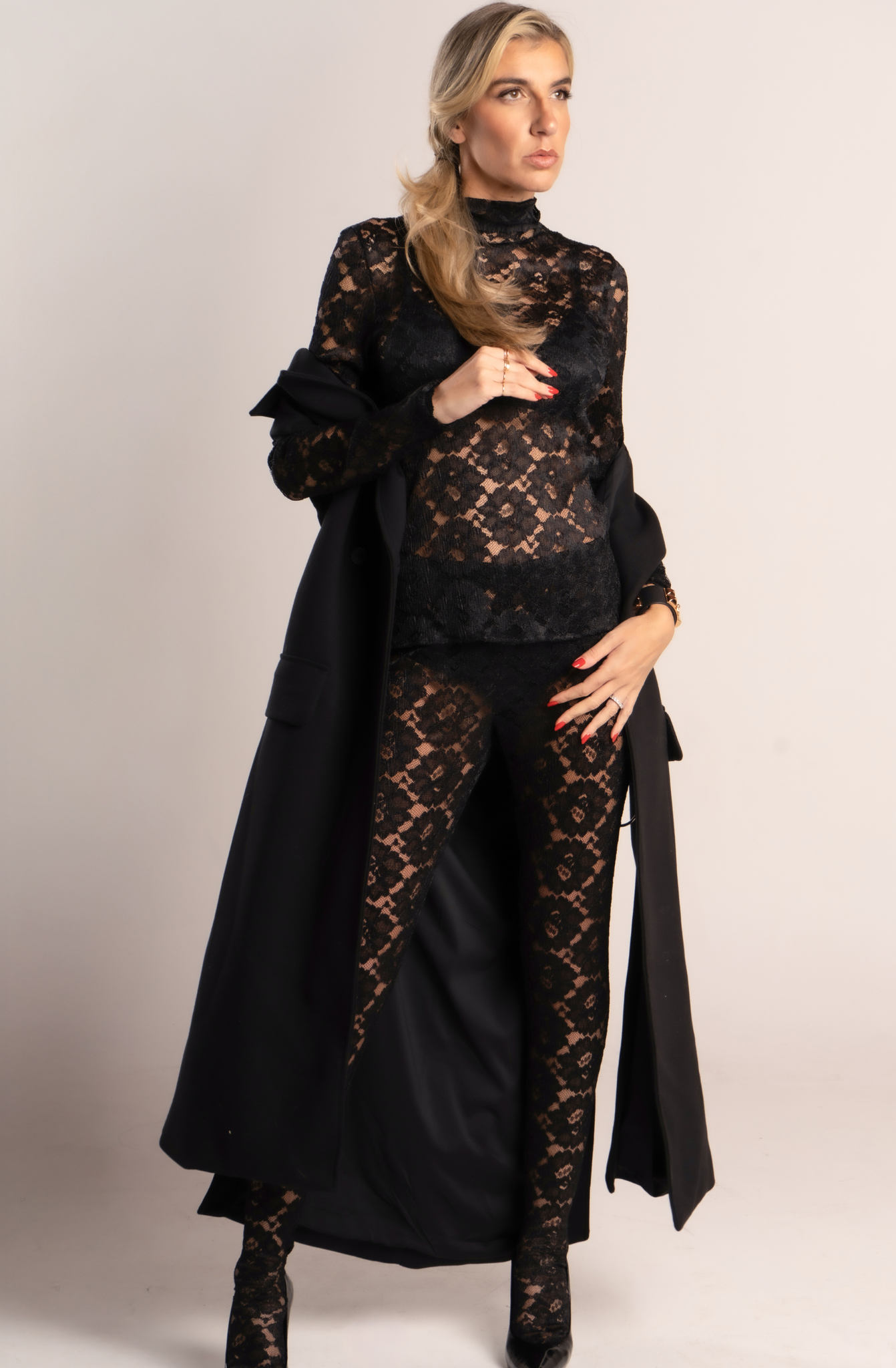 Gilet souvenir lungo in misto viscosa con spacchi collo revers doppiopetto spacchi laterali e applicazioni argento.