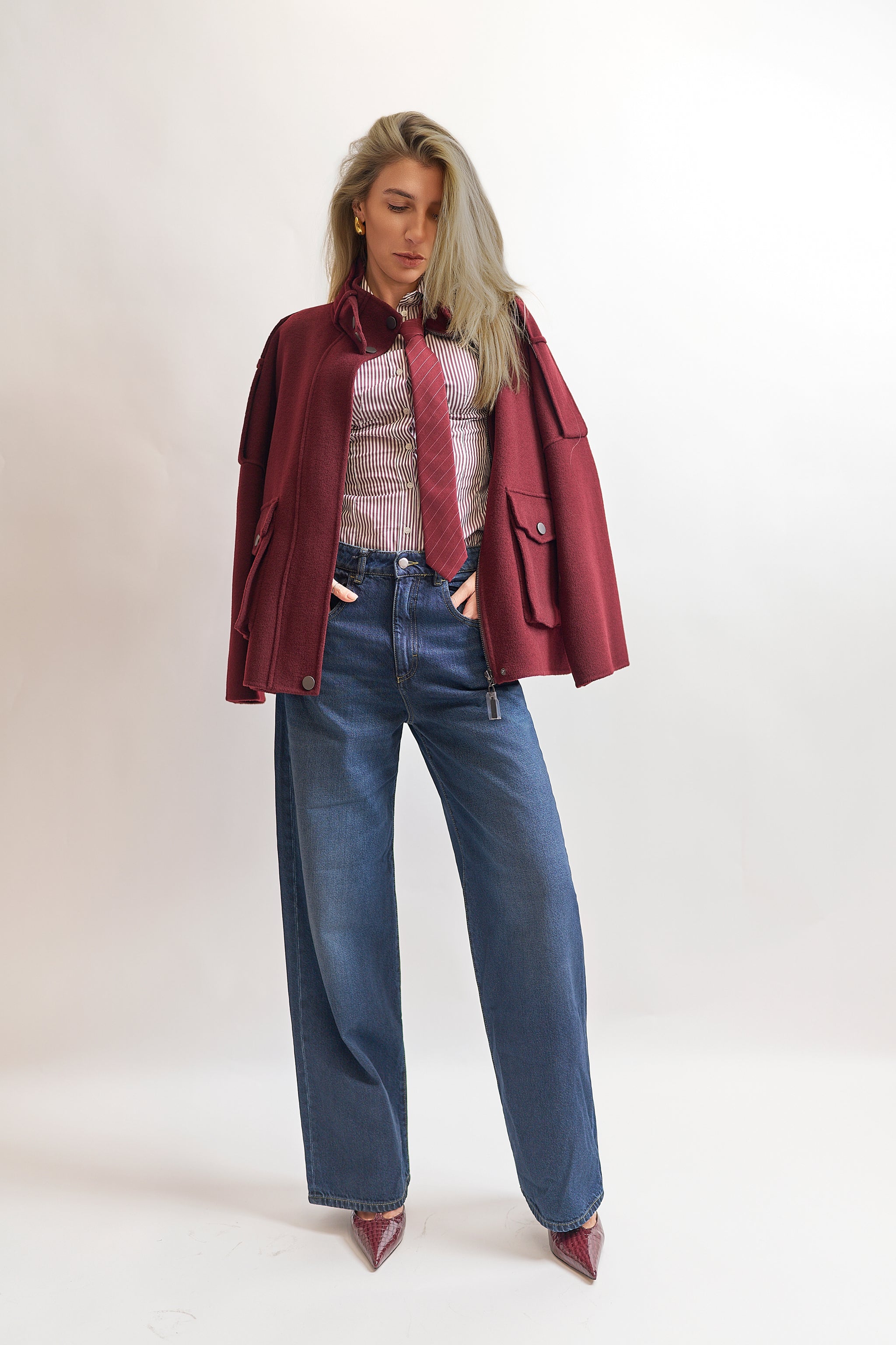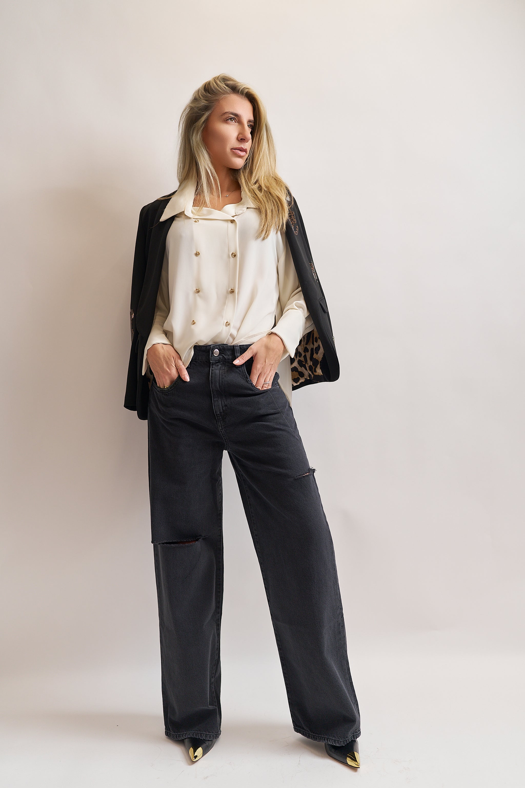 Jeans modello wide leg 100% cotone, lavaggio denim scuro.